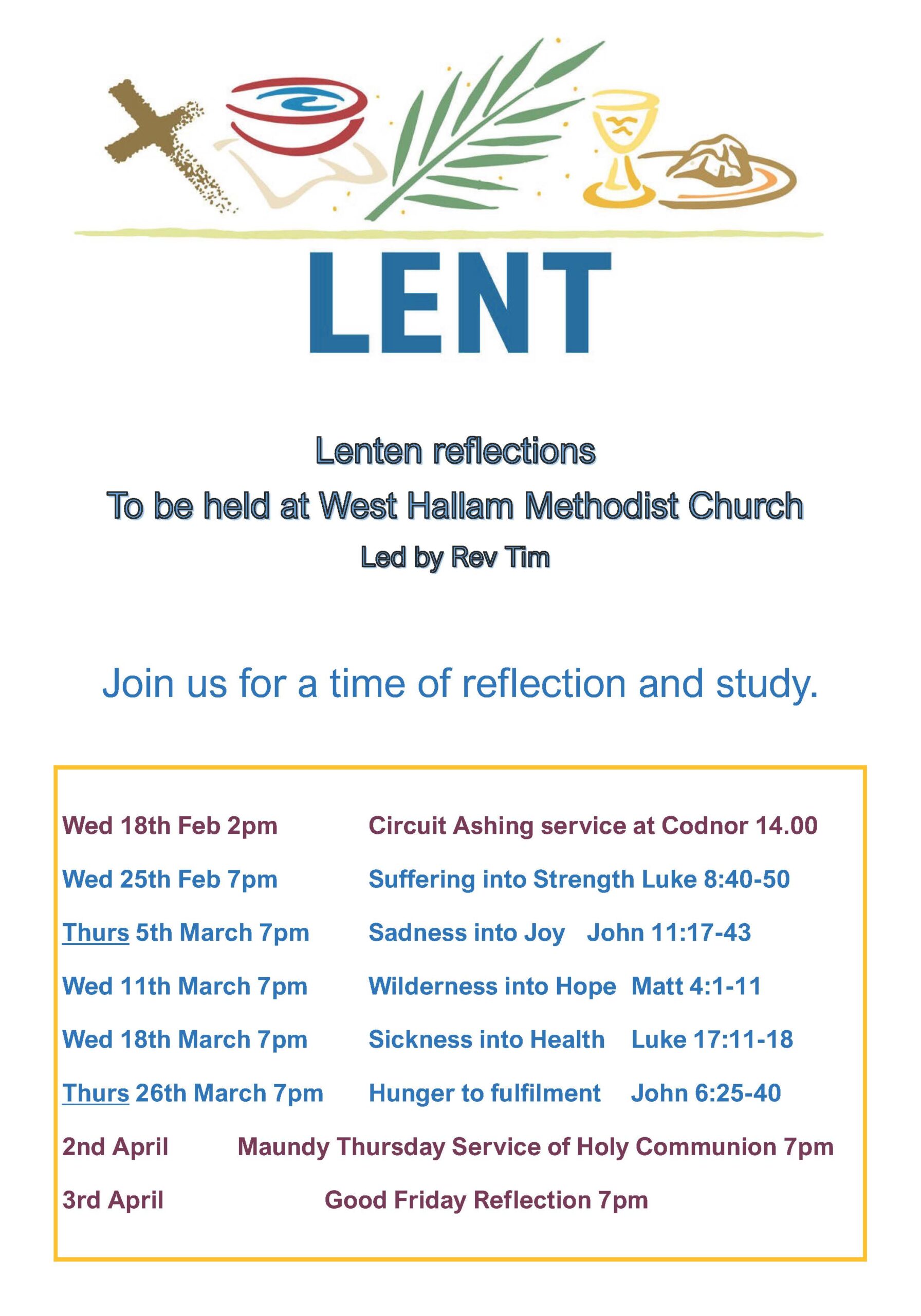 LENTEN REFLECTIONS at West Hallam Methodist Church – Led by Rev Tim Simms